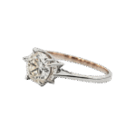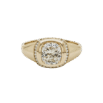 Surrounding the emerald, a delicate halo of pave-set diamonds adds a touch of glamour and brilliance to the design. The diamond-studded band gracefully complements the centerpiece, creating a harmonious balance of elegance and modern style.